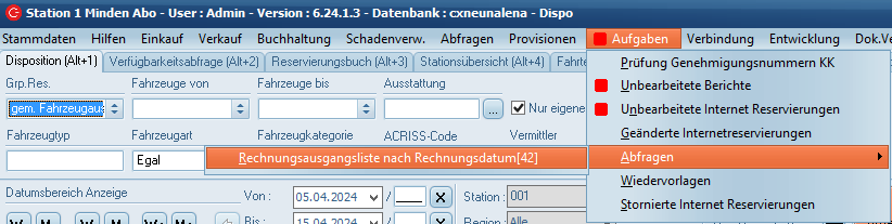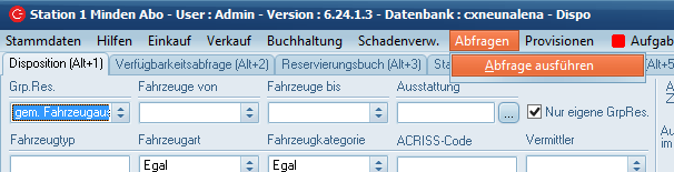 - Abfragen alle Abfragen (schaltet den Reiter "Abfragen" in der Dispo frei)