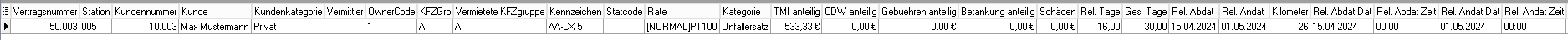 Einsatzbereich: Diese Auswertung liefert Mietverträge über Kundenname oder Zahlungsart. Sie wird häufig zum Kontrollieren von Kassenbüchern oder Vertragsnummernbereichen genutzt.