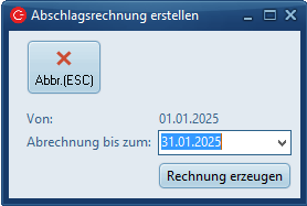 Im Standard wird im Abschlagslauf, abhängig von der Einheit, immer nur der eingegebene Zeitraum berechnet.