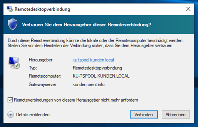 Auf dem Desktop die „C-Rent“-Remotedesktopverbindung starten (Doppelklick).