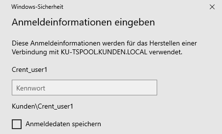 Den Benutzername (z.B. „Crent_user1“) und das Kennwort eingeben, dann auf „OK“ klicken.