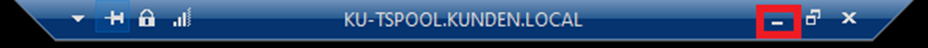 Zwischen dem Desktop von unserem Rechner und dem Desktop des Terminal-Servers kann mit den markierten Schaltflächen hin und her gewechselt werden.
