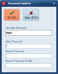 Ist noch kein Passwort vergeben, bleibt das Feld „Altes Passwort“ leer. Soll ein vorhandenes Passwort geändert werden, wird das bisherige Passwort in das Feld „Altes Passwort“ eingetragen.