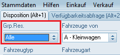 Unter „Gruppen“ in der Disposition werden Gruppenreservierungen aller Gruppen angezeigt, wenn das Feld „Grp.Res.“ auf „Alle“ steht.