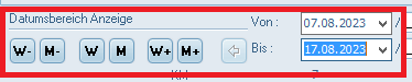 Mit den Feldern „Von“ und „Bis“ kann der angezeigte Datumsbereich detailliert ausgewählt werden.