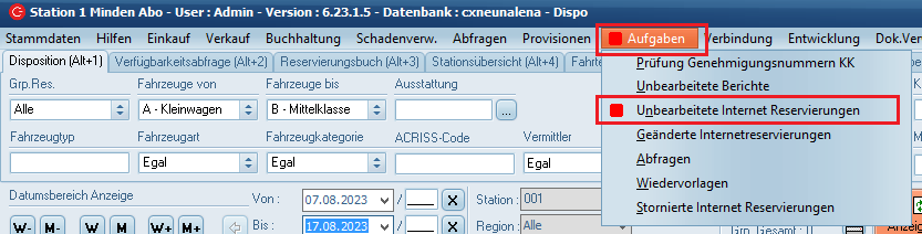 Die Reservierung wird aber auch in der Disposition direkt abgelegt und bleibt unbearbeitet, bis ein Fahrzeug zugewiesen wurde.