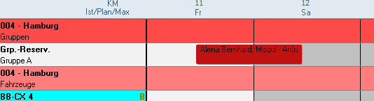 Die Reservierung wird jetzt unter den Gruppenreservierungen der Station angezeigt und kann später mit der linken Maustaste auf ein passendes Fahrzeug verschoben werden.