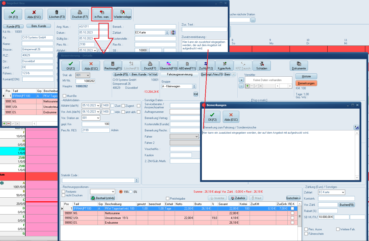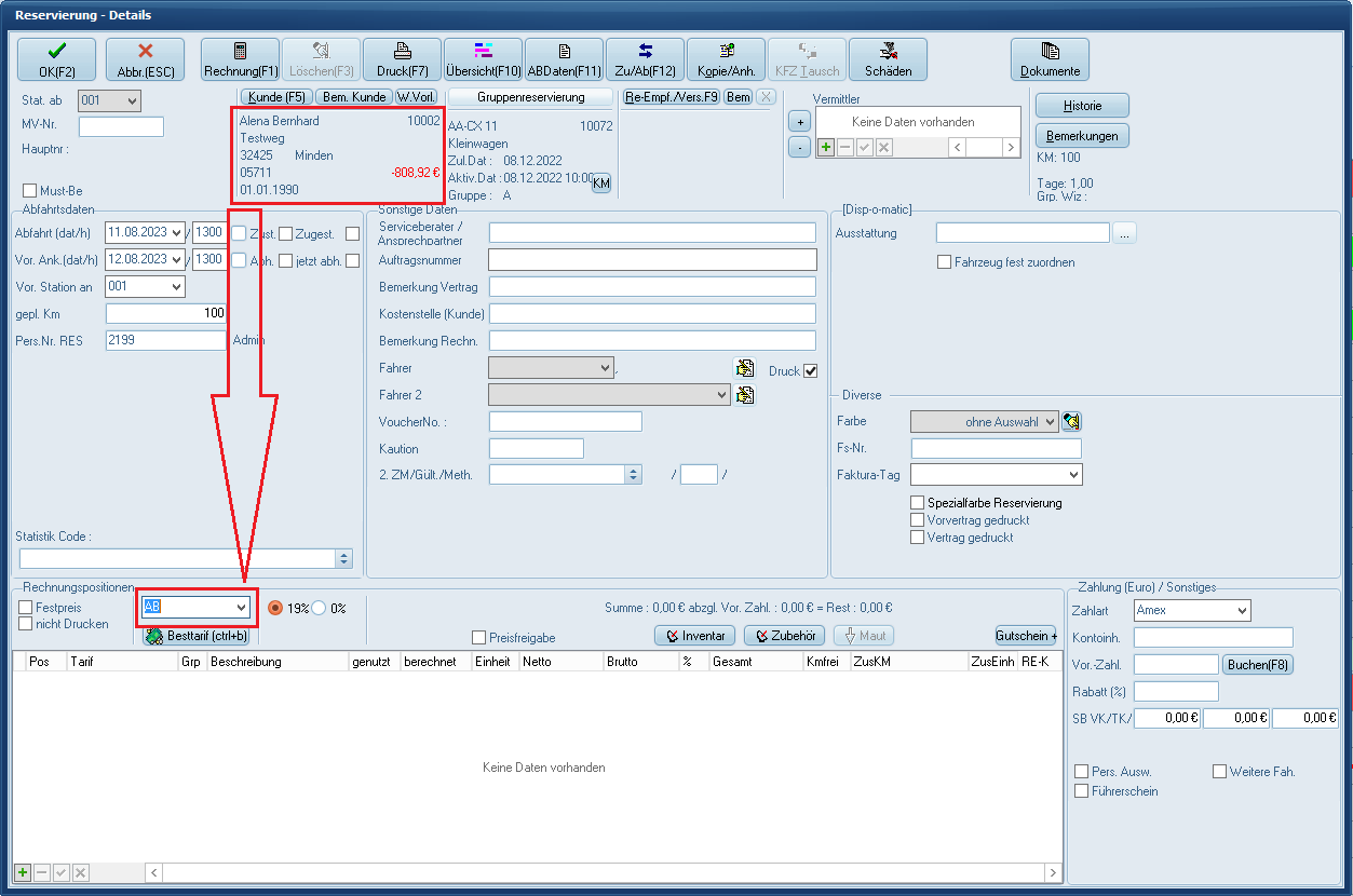 - Daher wird die Reservierung, bzw. der Mietvertrag zuerst auf einen DUMMY-Kunden (Platzhalter) angelegt.