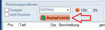 - Die Tarife des Rechnungsempfängers werden eingetragen, in diesem Fall durch Auswahl der Preisliste „WST“ und Klick auf „Besttarif“.