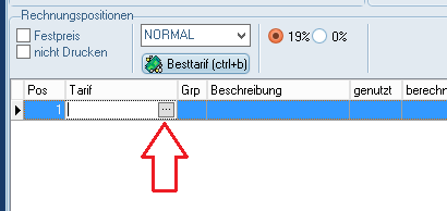 Um den zu verwendenden Tarif auszuwählen gibt man hier ein „?“ ein und bestätigt mit der Eingabetaste (Enter). Alternativ können die drei kleinen Punkte in diesem Feld angeklickt werden.