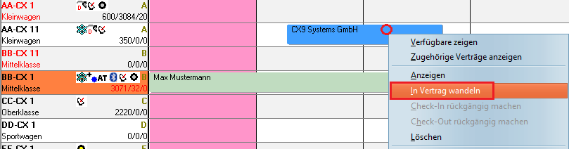 Das C-Rent bietet die Möglichkeit wiederkehrende Verträge oder Reservierungen, die mehrere Fahrzeuge betreffen über die Kopierfunktion einfach anzulegen.