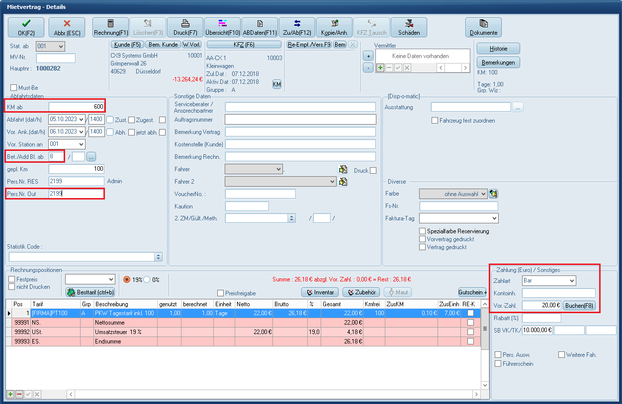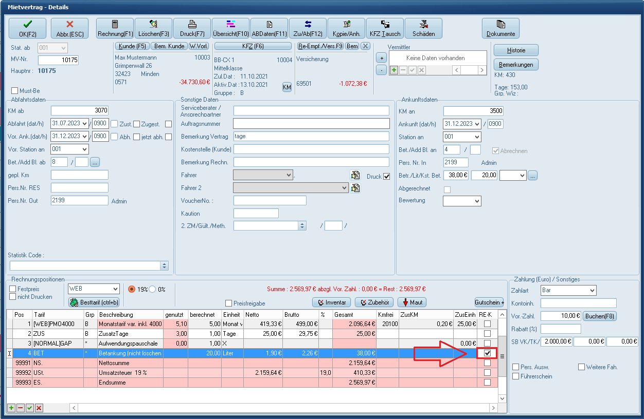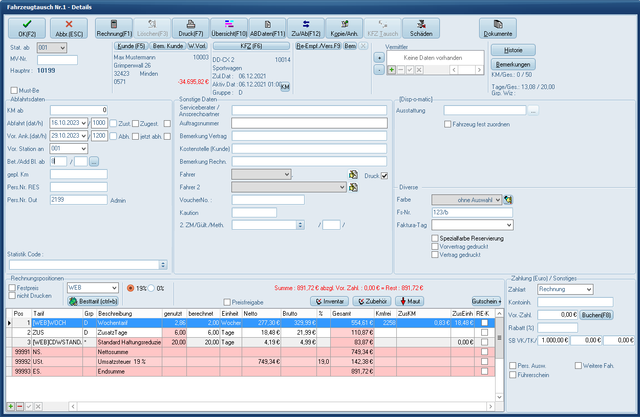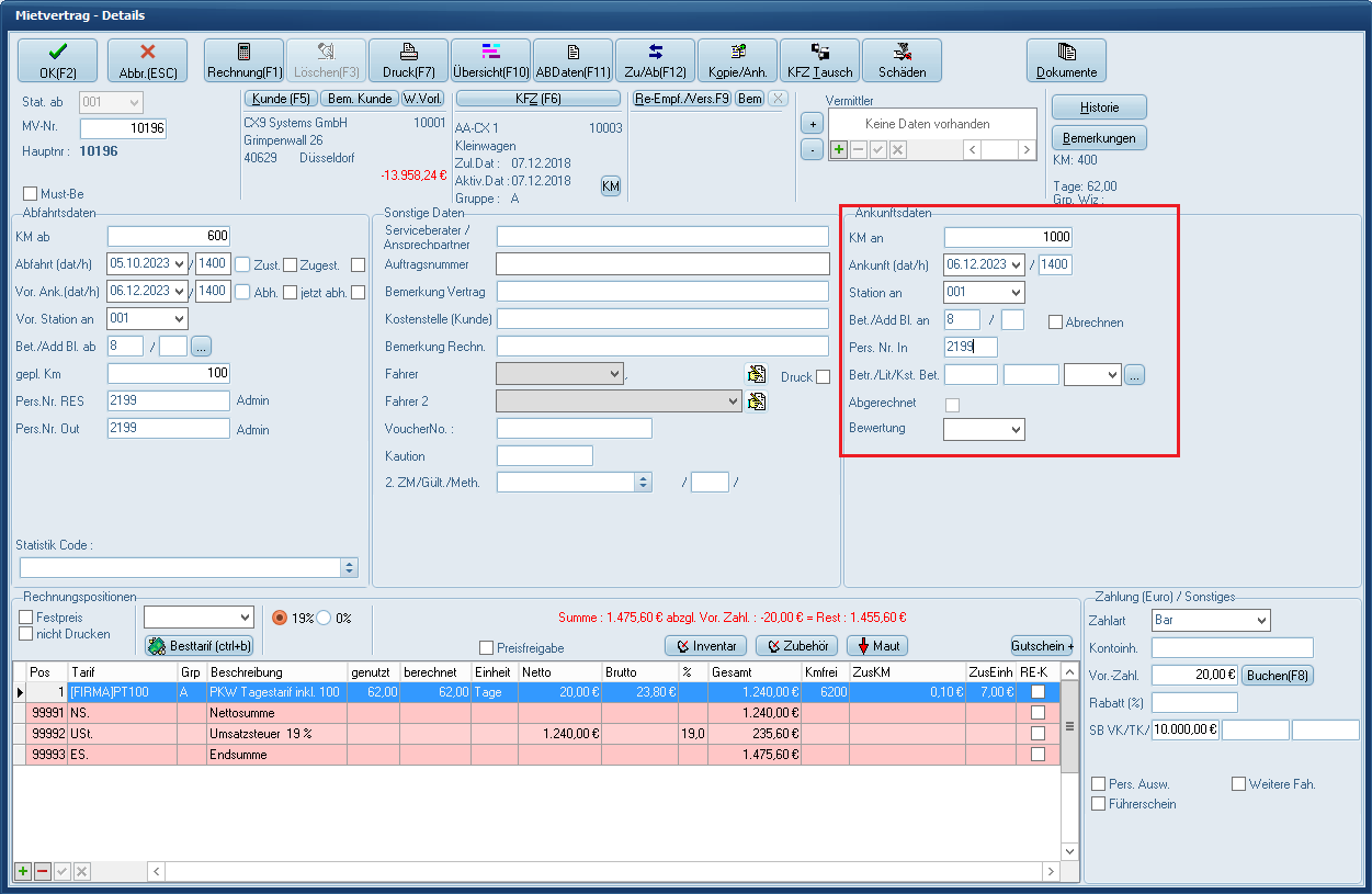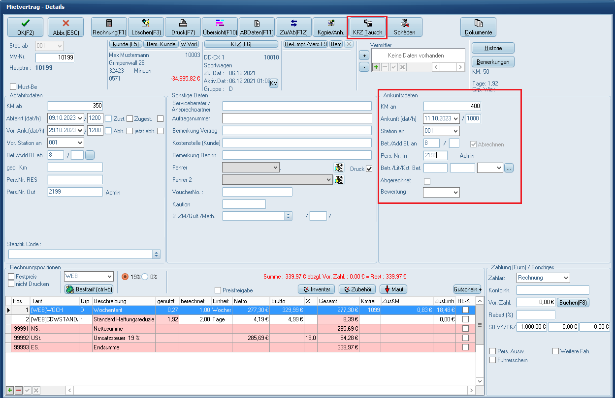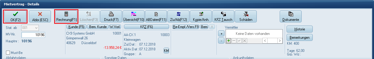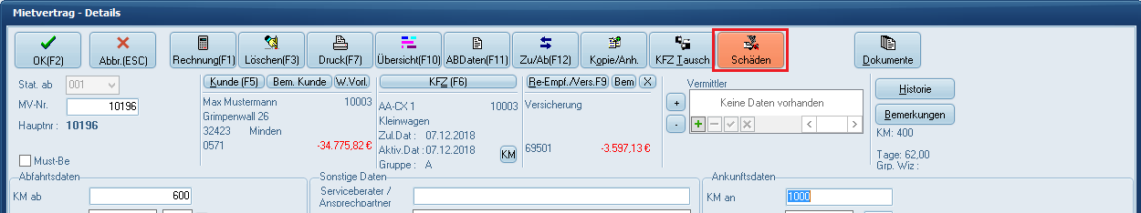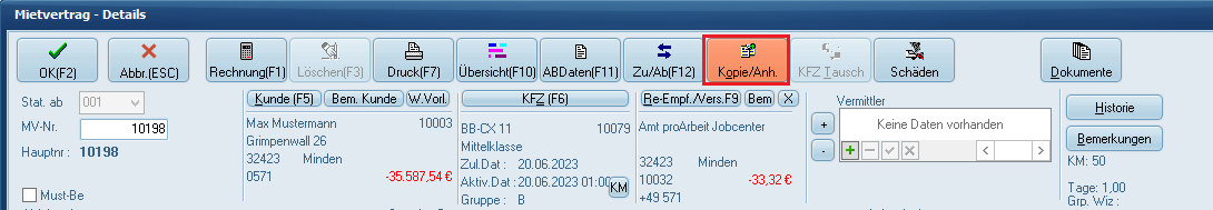 - Der Mietvertrag muss nach der Vermietung – die Kundendaten sind jetzt bekannt – vom DUMMY-Kunden auf den richtigen Kunden geändert werden.