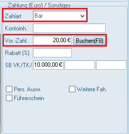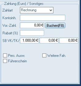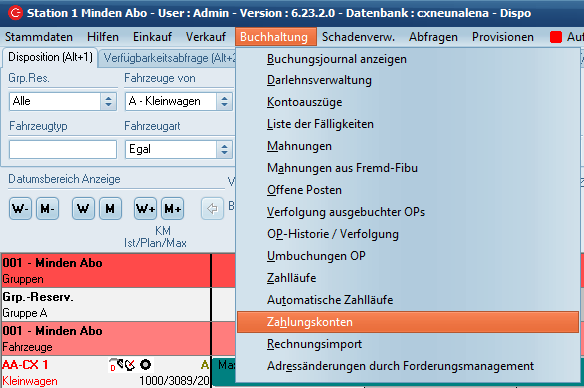 - Überprüfen ob für diesen Werkstattersatz-Mietvertrag die Zahlart „Rechnung“ festgelegt ist und ggf. korrigieren. Die hier festgelegte Zahlart gilt für den Rechnungsempfänger.