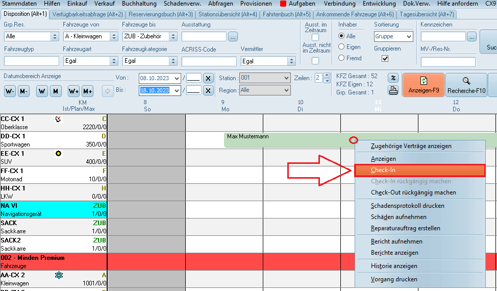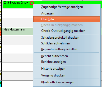 Um ein Fahrzeug zu tauschen wird beim aktuellen Fahrzeug ein Check-In durchgeführt.
