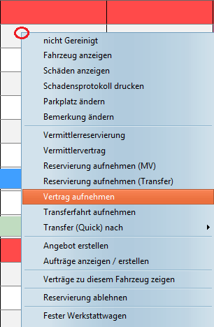 Aufnahme einer Fahrzeugreservierung (direkt auf ein bestimmtes Fahrzeug)