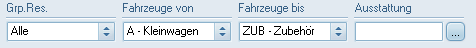 Zur Selektion der Fahrzeuggruppen finden Sie drei Drop-Down-Menüs