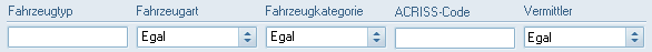 Schaltfläche öffnet ein Auswahlfenster in dem die benötigten Merkmale mit einem Haken versehen und somit ausgewählt werden können. - "ACRISS-Code" erlaubt die Selektion der "Association of Car Rental Industry System Standards" Fahrzeugklassen, wenn diese im Fahrzeugstamm entsprechend gepflegt wurden.