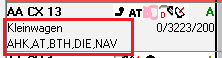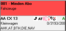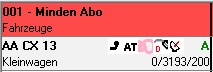 - Bei einzeiliger Anzeige werden der Fahrzeugtyp sowie das Kennzeichen und die wichtigsten Ausstattungsmerkmale angezeigt. Im Mietvertrag werden nur der Name des Kunden und das Stationskürzel dargestellt.