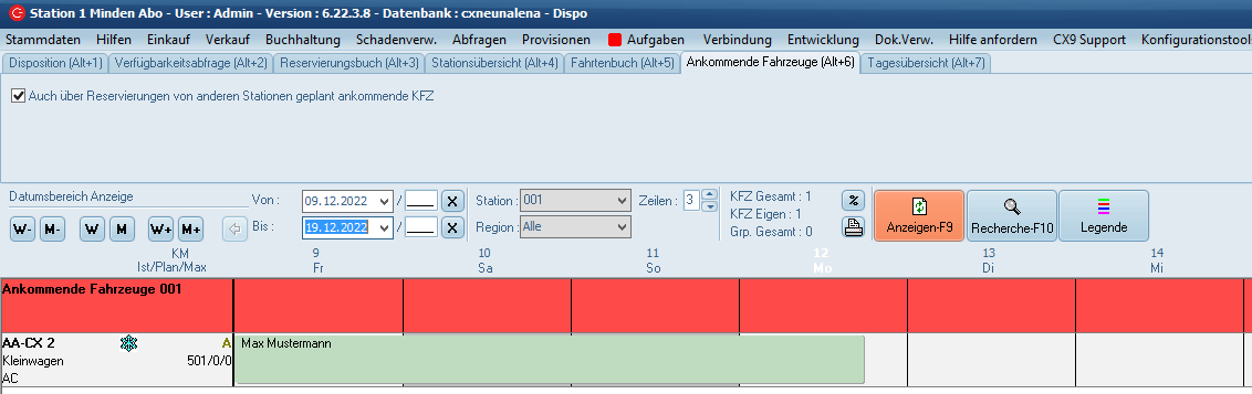 Diese Auswahl zeigt alle Vorgänge an, bei denen Fahrzeuge an der eigenen Station ankommen, auch solche, die von anderen Stationen kommen.