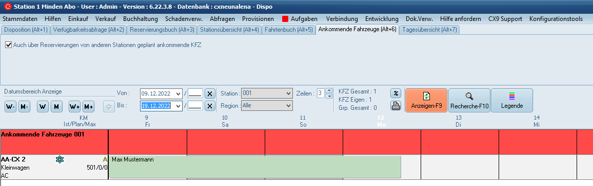 Diese Auswahl zeigt alle Vorgänge an, bei denen Fahrzeuge an der eigenen Station ankommen, auch solche, die von anderen Stationen kommen.