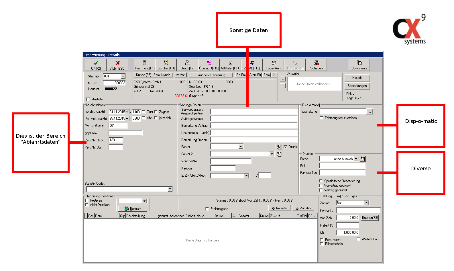 Wie Sie sehen, ist die Reservierungsmaske äußerst umfangreich und bietet Ihnen eine Vielzahl an Eingabemöglichkeiten und Optionen.