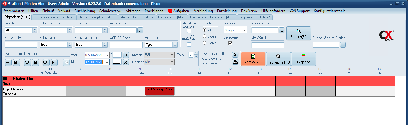 Haben sie sich mit Ihren Benutzerdaten angemeldet, gelangen sie direkt zum Herzstück der C-Rent Software: