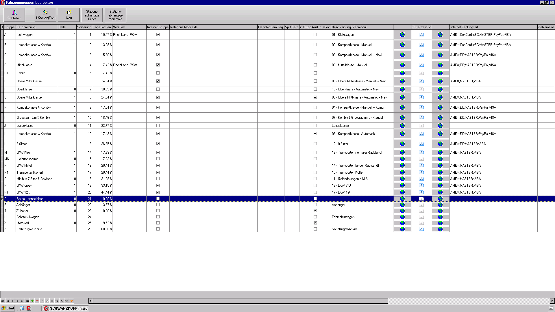 Hier geben Sie die Gruppenbezeichnung ein. dies sind für gewöhnlich Buchstaben (z.B. Gruppe "A" für Kleinwagen, "T" für Transporter etc.).
