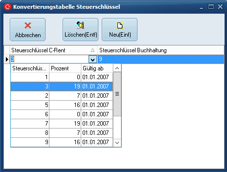 Konvertierungstabelle Steuerschlüssel
