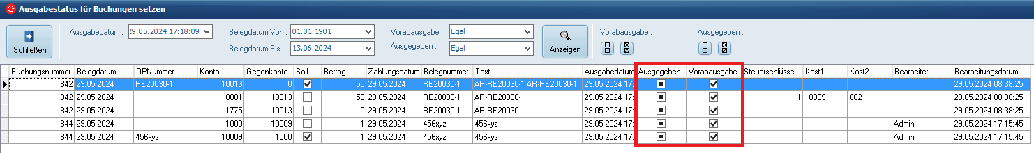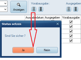 Haken in den Spalten Ausgegeben und Vorabausgabe - Daten wurden scharf ausgegeben. -