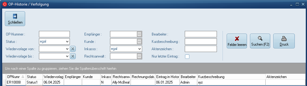 Hier können eigene Staus eingetragen werden, die über Buchhaltung > "OP-Historie / Verfolgung" selektiert werden können.