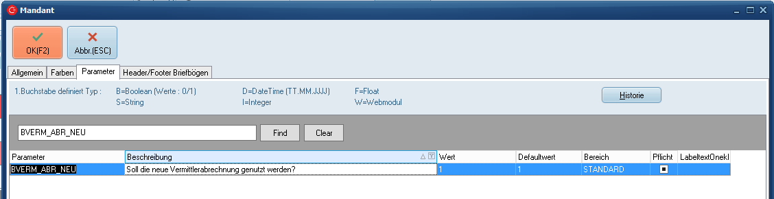 - Der Parameter BVERM_ABR_NEU muss auf 1 gestellt werden.