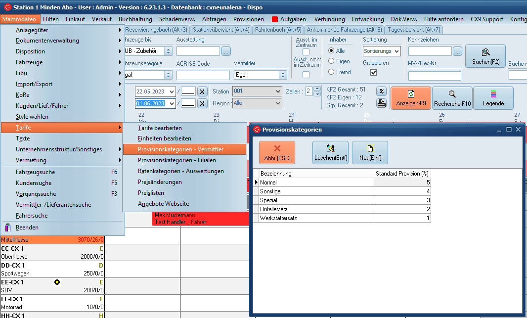 Die gewünschten Provisionskategorien müssen über Stammdaten > Tarife > Provisionskategorien - Vermittler