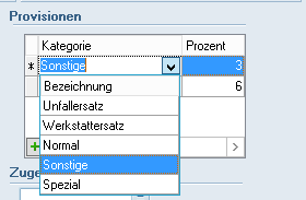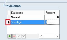 erzeugen Sie eine neue Zeile. Wählen Sie nun über das Dropdown-Menü die gewünschte Provisionskategorie aus und tragen Sie die gewünschte Prozentzahl in der Spalte daneben ein.