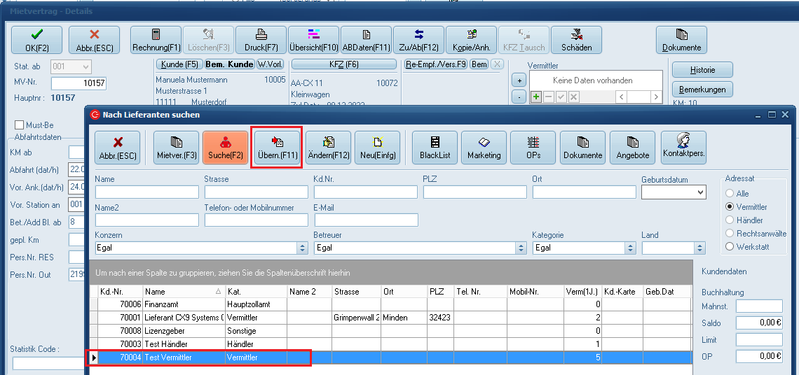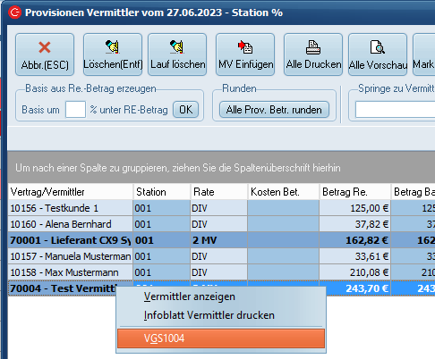 Um nun schließlich die Gutschrift zu erstellen und somit dem Vermittler seine Provision zukommen zu lassen, führen Sie einen Rechtsklick auf den Vermittler aus, um ein Kontextmenü zu öffnen.