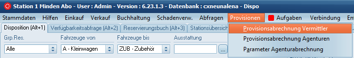 Die Maske "Provisionsabrechnung Vermittler" finden Sie im Reiter "Provisionen" > "Provisionsabrechnung Vermittler".