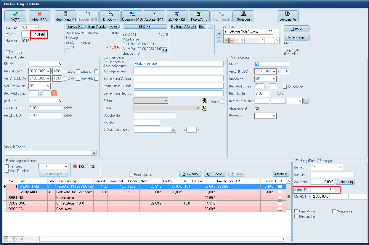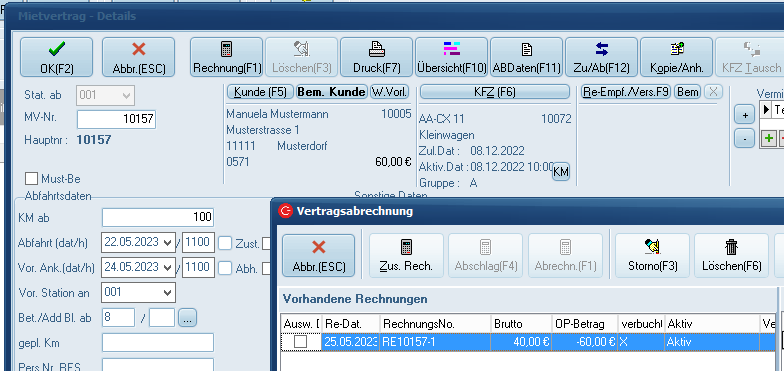 Um nun die Provisionsabrechnung durchzuführen, rechnen Sie zunächst den Vertrag wie gewohnt ab.