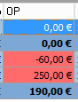 Überzahlungen werden mit einem negativen OP Betrag angezeigt (hier -60,00€).