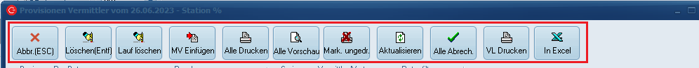 Druckt alle Vermittlergutschriften (nur möglich, wenn diese schon erstellt wurden). - Alle Vorschau