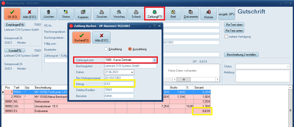 Wurde der Rechnungsbertrag noch nicht beglichen, ist hier der OP vermerkt. Dieser wird bei klick in die Zeile rot hinterlegt.