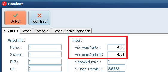 - Die Provisionskonten müssen angelegt und unter Mandant vermerkt werden:
