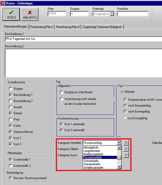 Zunächst müssen Provisionskategorien in den Stammdaten angelegt sein (siehe hierzu das Kapitel Provisionskategorien)