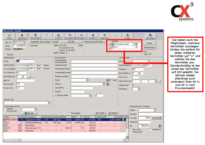Im Vertrag wird nun der Vermittler angezeigt, rechts daneben "100".