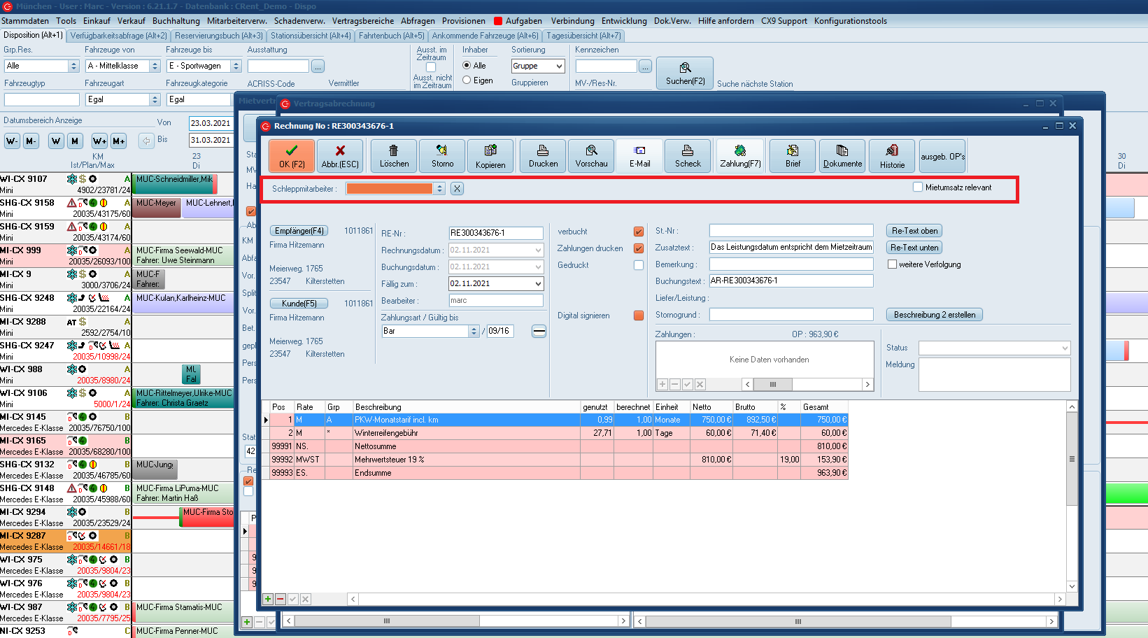 Hierzu zählt der Schleppmitarbeiter, und Mietumsatz.