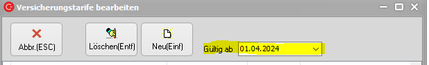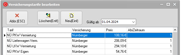 Hier sieht man nun, welche Versicherungstarife im System vorhanden sind und kann diese auch ändern.