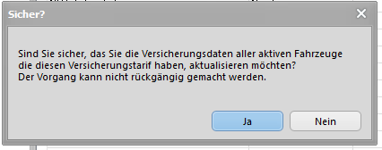 Die folgende Meldung erscheint. Hier klickt man auf ja, und in allen Fahrzeugen, die den Tarif eingetragen haben wird eine neue Zeile eingetragen.