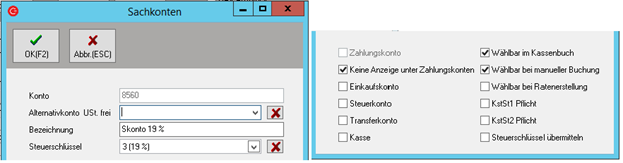 >> hier wird in der Spalte Wert das Konto für Skonto hinterlegt.