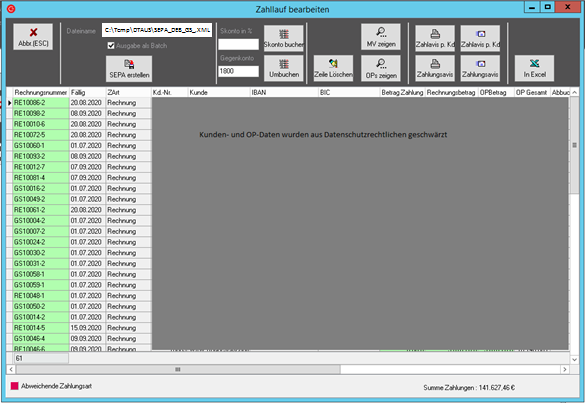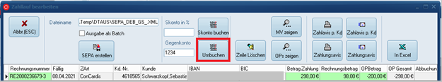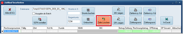 Nachdem die SEPA-Datei erfolgreich im Bankprogramm eingelesen wurde, müssen zunächst nicht erfolgte Lastschriften vor dem Buchen aus dem Lauf gelöscht werden.