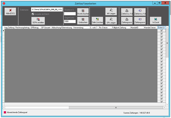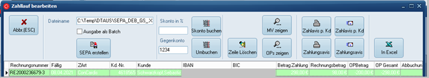 Sie können den Lauf, per Doppelklick auf die Zeile, öffnen. Die Maske Zahllauf bearbeiten öffnet sich: