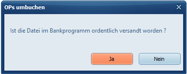 Per Klick auf „Nein“ brechen Sie den Vorgang ab. Bestätigen Sie mit „ja“ werden die Umbuchungen durchgeführt. Die Zeilen werden nach erfolgreicher Umbuchung grün.