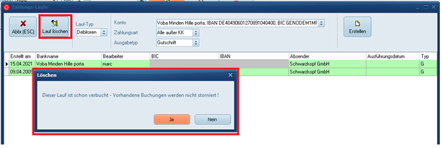 Zahlläufe, die noch nicht umgebucht wurden können problemlos gelöscht werden.